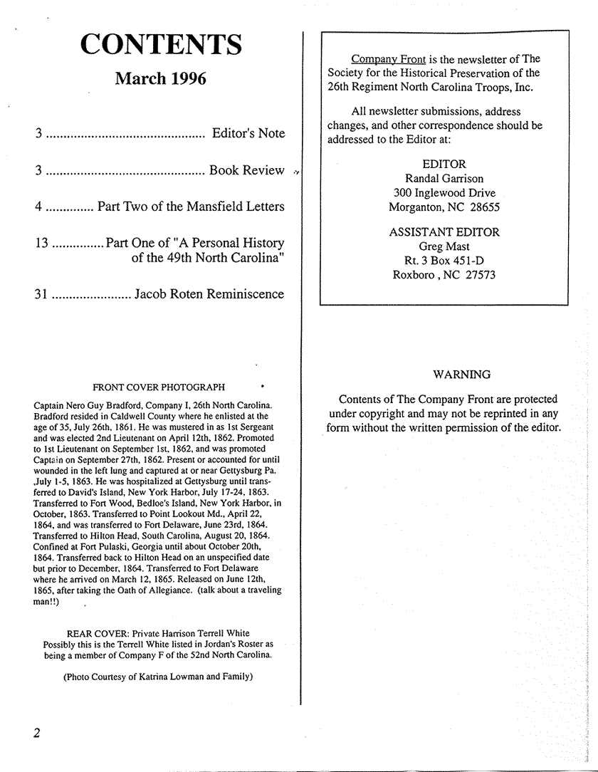 without permission from The Society for the Historical Preservation of the 26th Regiment North Carolina Troops, Inc.