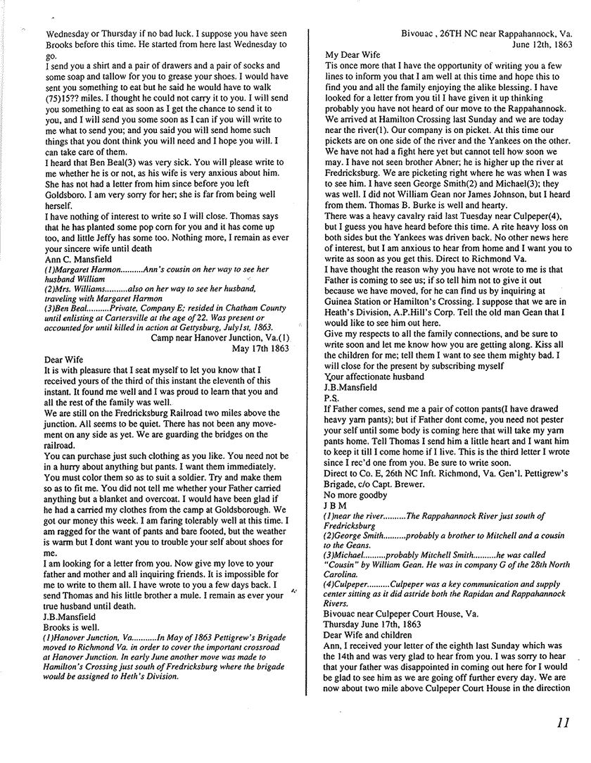 state "Company Front-March 1996-Jefferson Mansfield Letters Part II" indicating the appropriate page number.