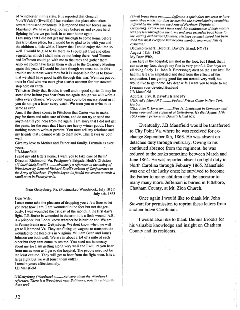 state "Company Front-March 1996-Jefferson Mansfield Letters Part II" indicating the appropriate page number.