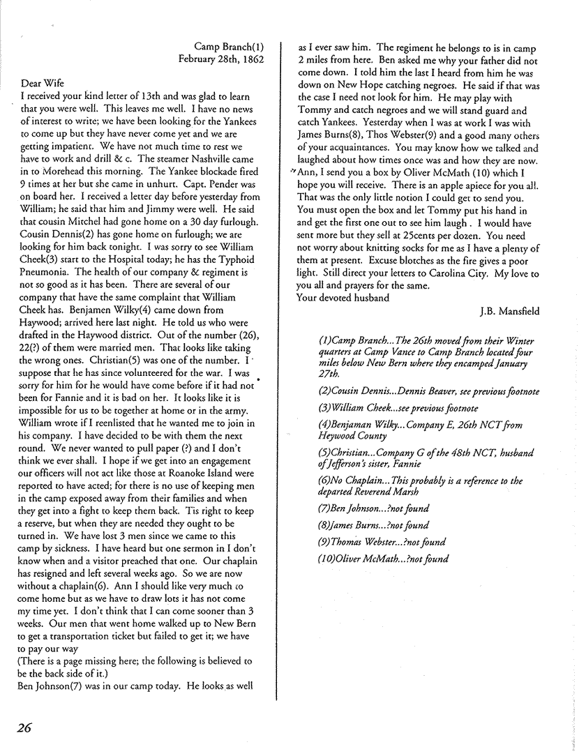 Camp Branch Camp Vance Carolina City Haywood District New Bern New Hope Roanoke Island